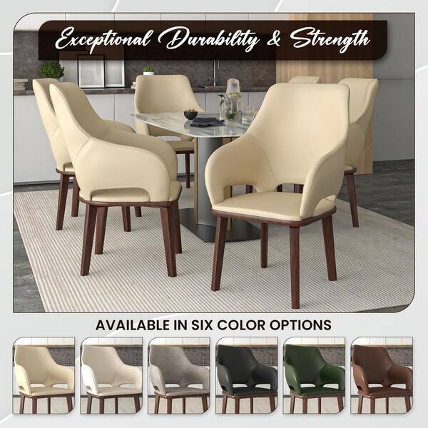 Leisure Mod Leather Dining Chair in Modern Design Rubberwood Base Vivara Collection in White