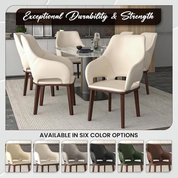 Light Toupe Leisure Mod Leather Dining Chair in Modern Design Rubberwood Base Vivara Collection