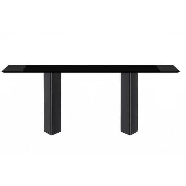 Lior Dining Table 71 in. Rectangular Kitchen Table Furniture with Double Pedestal Black Steel Legs for in Black Seats 8