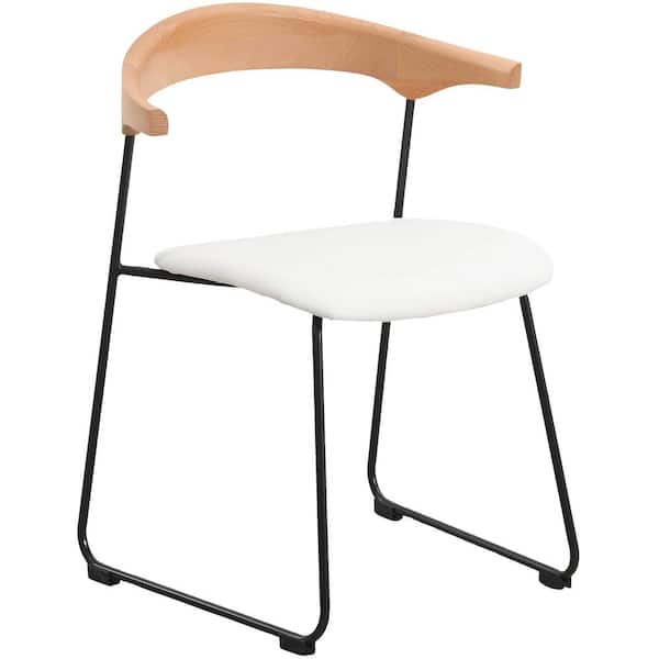 Lyra Modern Dining Chair Upholstered in Faux Leather with Beech Back and Metal Legs in Natural Wood/White