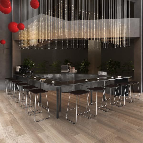 Melrose 26 in. Modern Wood Bar Stool with Chrome Iron Base and Footrest Set of 4 In Black