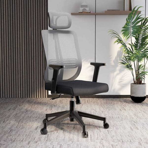 Modern Adjustable Fabric Office Chair Mesh Back and Headrest Task Chair with Swivel and Tilt Nifty Series in White