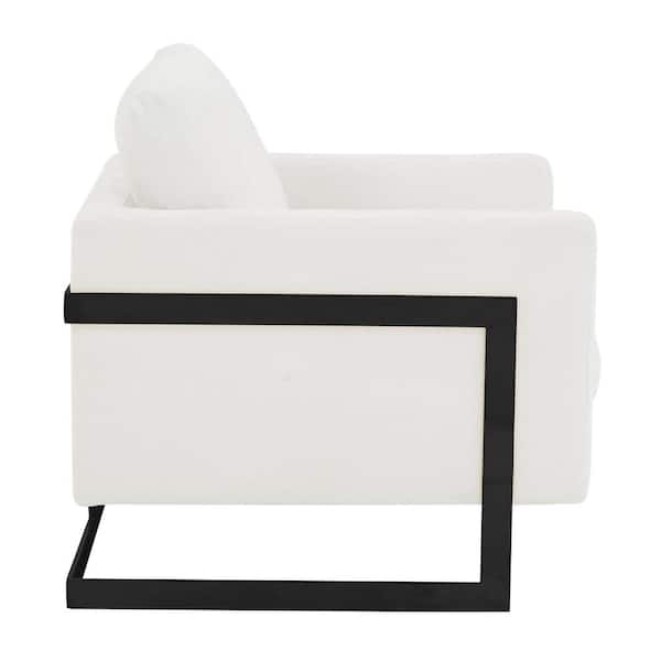 Modern Geometric Accent Chair Upholstered Boucle Side Armchair with Black Stainless-Steel Base Lincoln Series in White