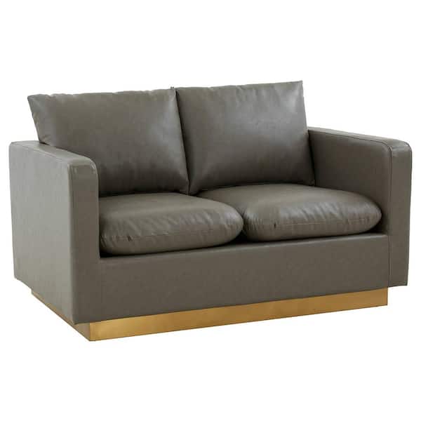Nervo 56 in. Mid-Century Modern Gray Upholstered Faux Leather 2-Seat Loveseat with Gold Frame
