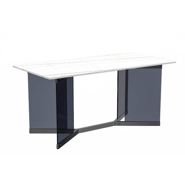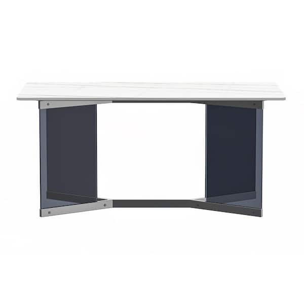 Oryn Modern White/Gold Stone 55.11 in. Double Pedestal Dining Table, Seats 4