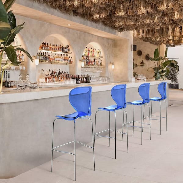 Oyster 29.5 in. Transparent Blue High Back Metal Bar Stool with Acrylic Seat Set of 2