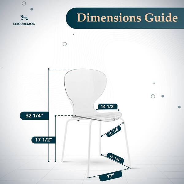 Oyster Transparent Dining Chair Stackable Curved Back With Stainless Steel White Legs Set of 2