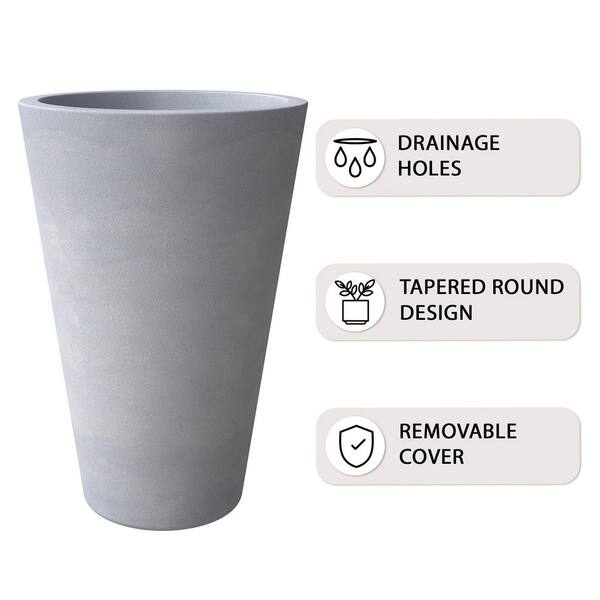 Pebble Fiberstone and MGO Clay Planter, Modern Tapered Round Planter Pot for Indoor and Outdoor (Grey, 16 in. Wide)