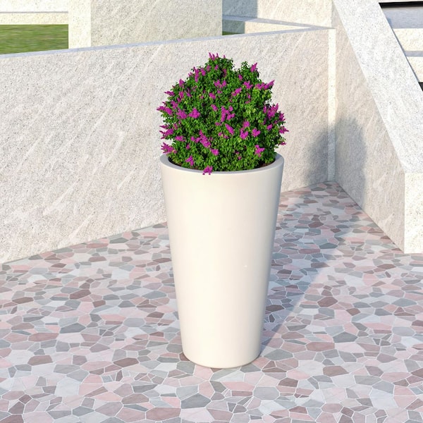 Pebble Fiberstone and MGO Clay Planter, Modern Tapered Round Planter Pot for Indoor and Outdoor (White, 20 in. Wide)