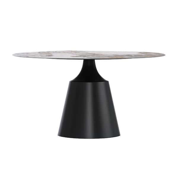 Prynn Mid-Century Modern 60 in. Round Dining Table with Sintered Stone Top and Black Pedestal Base (Medium Grey)