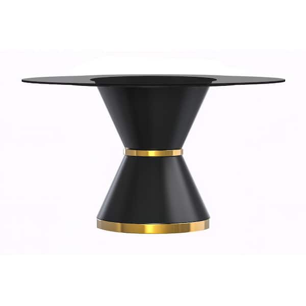 Qorvus Modern Clear Round Glass Tabletop 60 in. Pedestal Stainless Steel Base Dining Table Seats 4