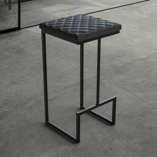 Quincy 29 in. Quilted Leather Bar Stool - Black Metal Frame with Footrest Counter Height Chair in Black