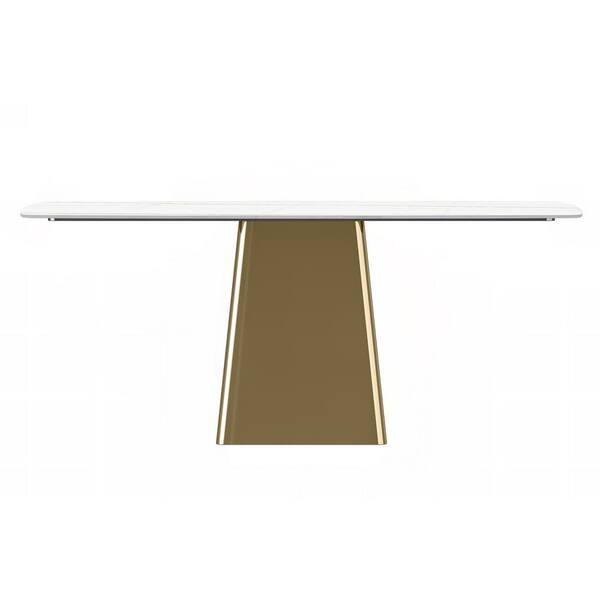 Quinix Modern White/Gold Stone 62 in. Pedestal Dining Table, Seats-6
