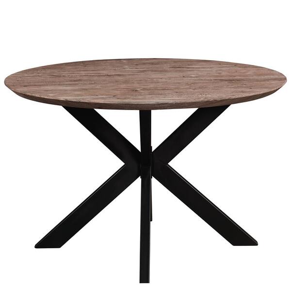 Ravenna 47 in. Modern Round Wood Dining Table with Metal x-Shaped Legs in Rustic Grey