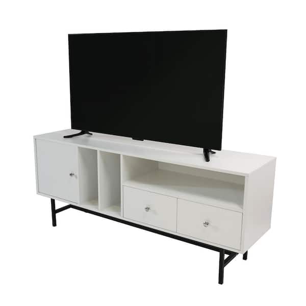Rochester Modern Rectangular TV Stand with Enclosed Storage and Powder Coated Iron Legs, White