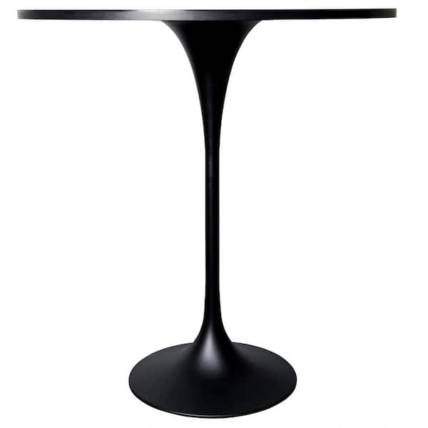 Round 36 in. Bar Height Dining Table with Sintered Stone Top and Black Steel Base Verve Series in Black Marbleized