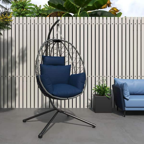 Summit Modern Outdoor Single Person Porch Swing Chair in Grey Metal Frame with Removable Cushions, Blue