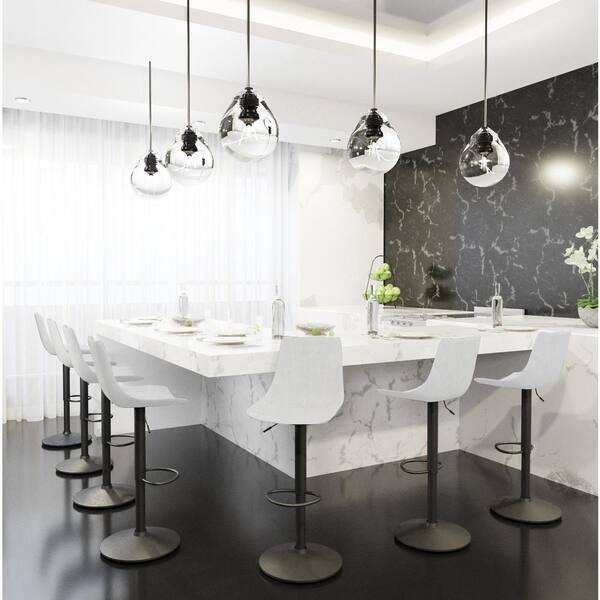 Tilbury 32.2 in. Adjustable Faux Leather High Back Bar Stool with Black Metal Base and Footrest in Light Grey