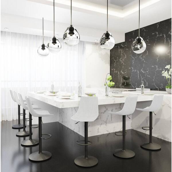 Tilbury 32.2 in. Light Gray High Back Metal Bar Stool with Faux Leather Seat (Set of 2)