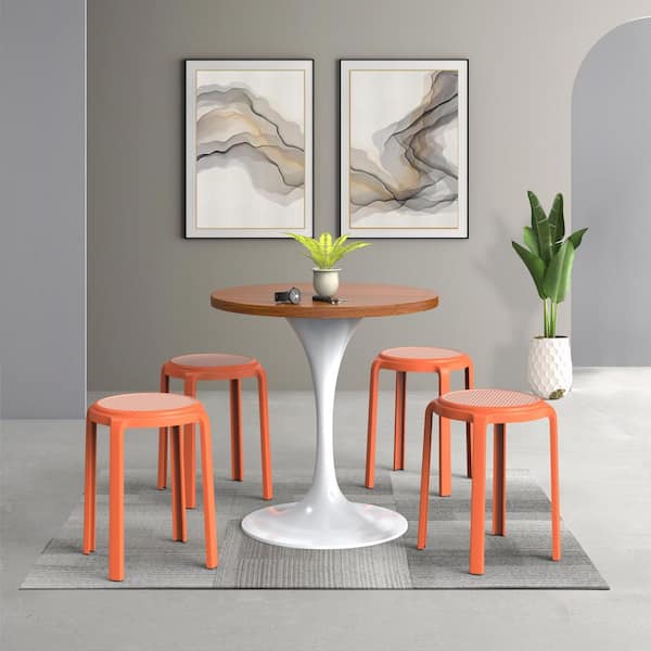 Tresse 17.7 in. Orange Backless Round Plastic Counter Stool with Plastic Seat