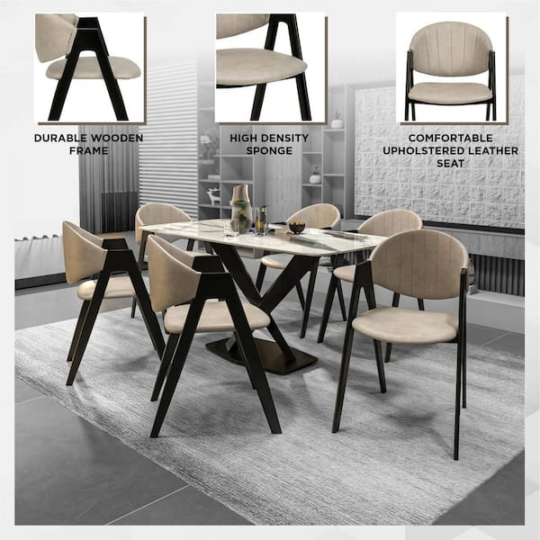 Upholstered Dining Chair in Leather with Curved Back and Powder-Coated Iron Base Savor Collection in Taupe