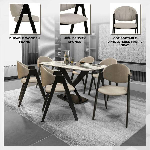 Upholstered Dining Chair in Polyester with Curved Back and Powder-Coated Iron Base Savor Collection in Grey