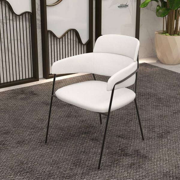 Upholstered Dining Chair in Polyester with Powder-Coated Stainless Steel Legs Axis Collection Set of 2 in White