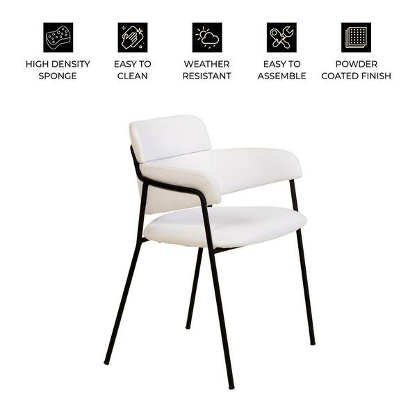Upholstered Dining Chair in White Polyester with Powder-Coated Stainless Steel Legs Axis Collection Set of 4 in