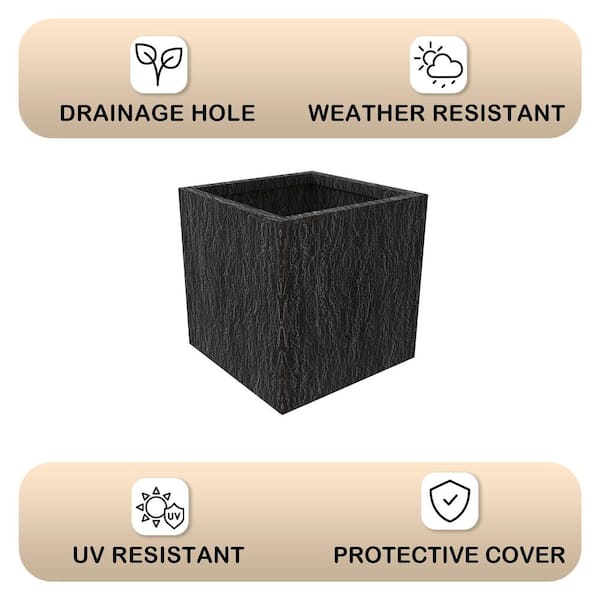 Verdura Modern Square Fiberstone and Clay Planter Weather Resistant with Drainage Holes in Dotted Black (22 in. Wide)