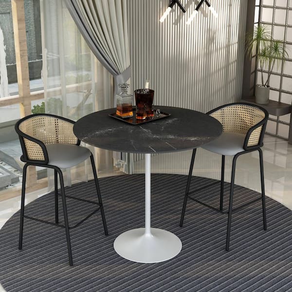 Verve 48 in. Bar Table Round MDF Tabletop Bistro Table in White Stainless Steel Pedestal Base in Black