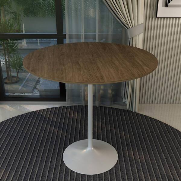 Verve 48 in. Bar Table Round MDF Tabletop Bistro Table in White Stainless Steel Pedestal Base in Dark Walnut