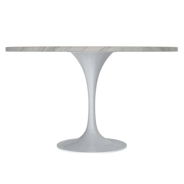 Verve Modern White Round Sintered Stone 48 in. with Pedestal Base Dining Table 4 Seater, White