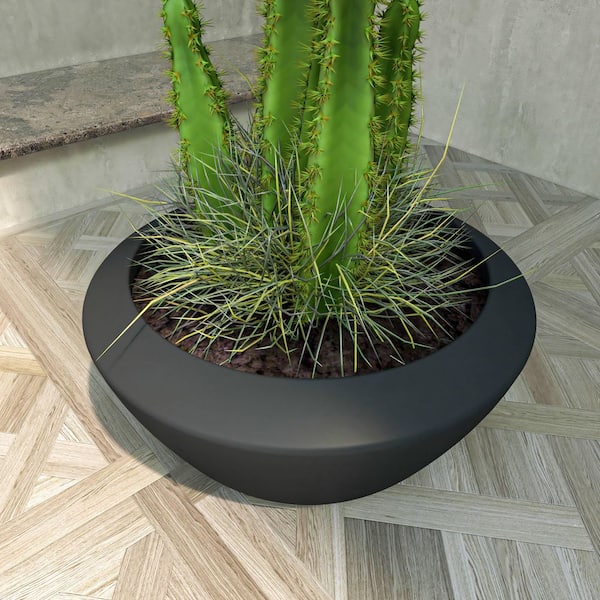 Vessel 15 in. Wide Modern Black Fiberstone and MGO Clay Planter, Round Planter Pot for Indoor and Outdoor Home