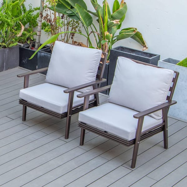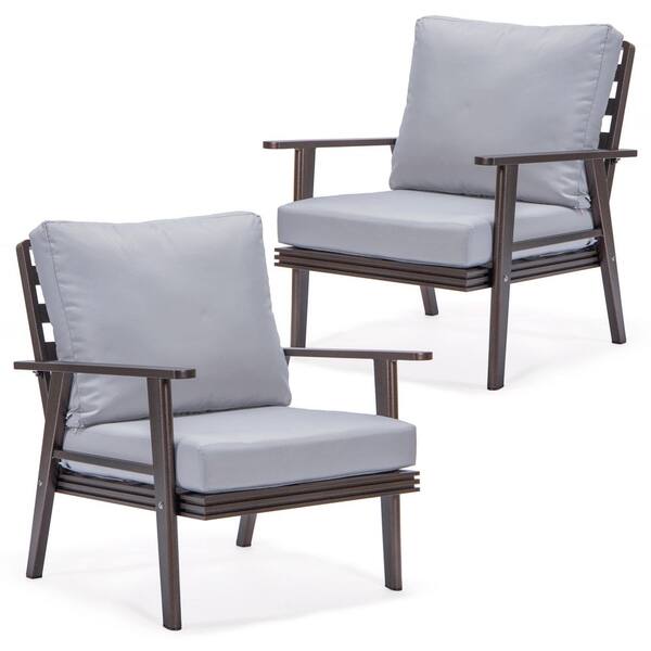 Walbrooke Modern Brown Outdoor Arm Chair w/ Powder Coated Aluminum Frame and Removable Cushions for Patio in Light Grey