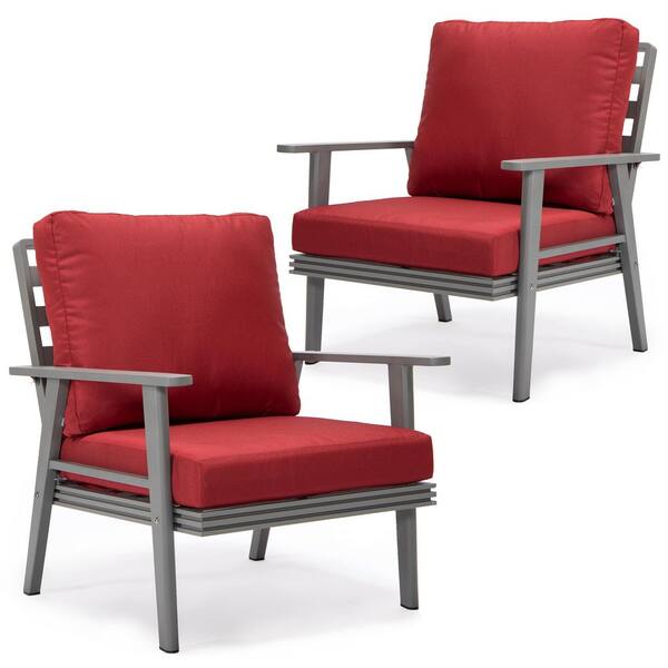 Walbrooke Modern Grey Outdoor Arm Chair with Powder Coated Aluminum Frame and Removable Cushions in Red Set of 2