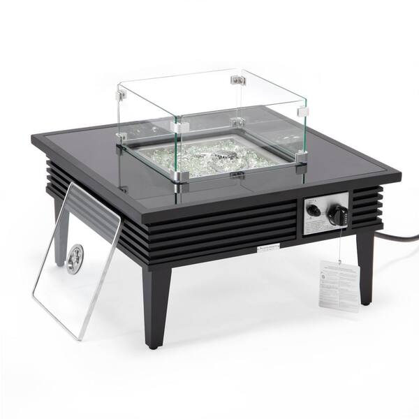 Walbrooke Patio Square Fire Pit and Tank Holder with Slats Design (Black)