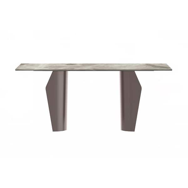 Zelan Modern Deep Grey Stone 55.11 in. Trestle Dining Table, Seats 4