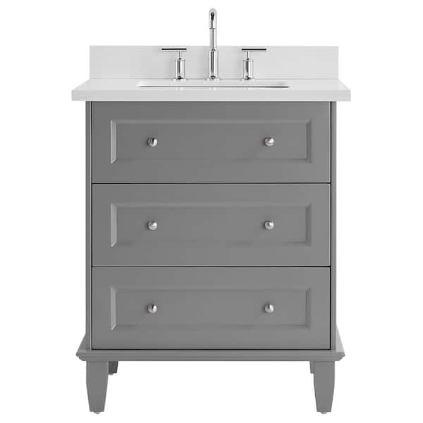 Lenore 30 in. W x 21 in. D x 34 in. H Bath Vanity in Gray with Pure White Quartz Top and Single Sink Ceramic Basin