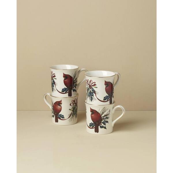 Winter Greetings 12 oz. Ivory Multi-Colored Porcelain Mug (Set of 4)