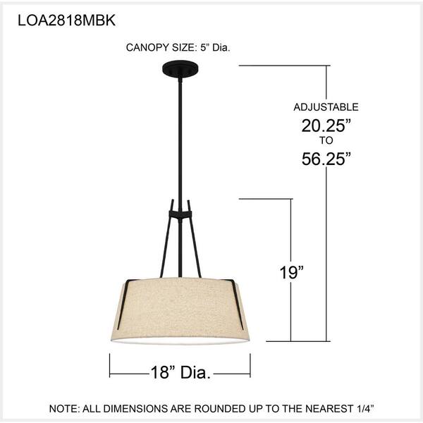Leona 3-Light Matte Black Shaded Pendant Light with Fabric Shades