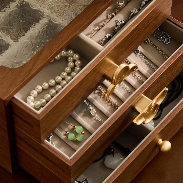 10 in. Wide Walnut Color with Glass Ceiling Wooden Jewelry Box