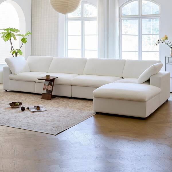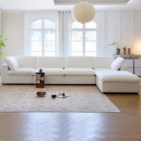 160 in. Square Arm Fabric L-Shaped Removable Covers Sectional Sofa 5-Seater in White