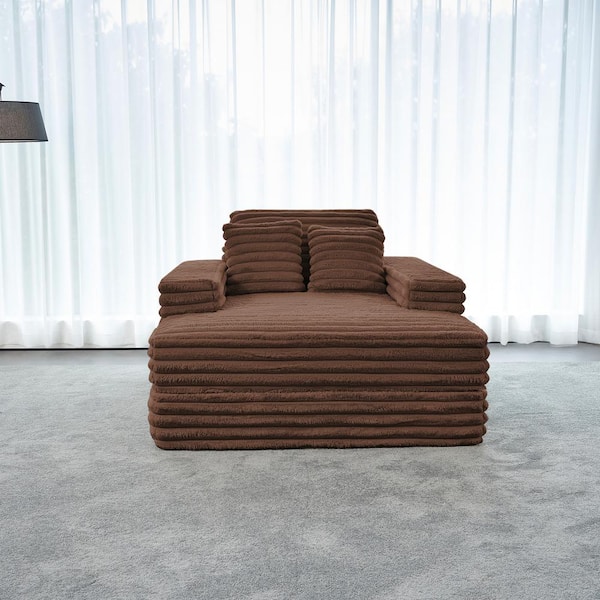 55.12 in. Wide Square Arm Velvet Square Sectional Sofa Couch Modern Single Square in. Brown