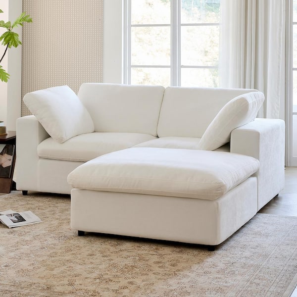80 in. Square Arm Fabric L-Shaped Removable Covers Sectional Sofa 3-Seater in White