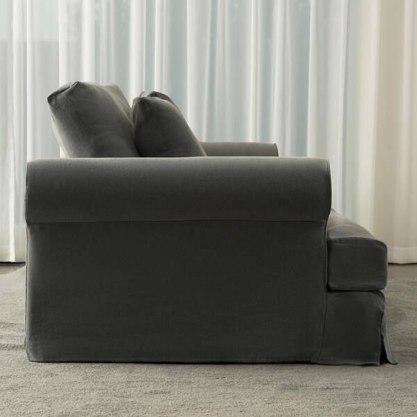 Lazy Style 102 in. Wide Round Arm Cotton and Linen Fabric Removable Covers Rectangle 2-Seater Sofa in Grayish Brown