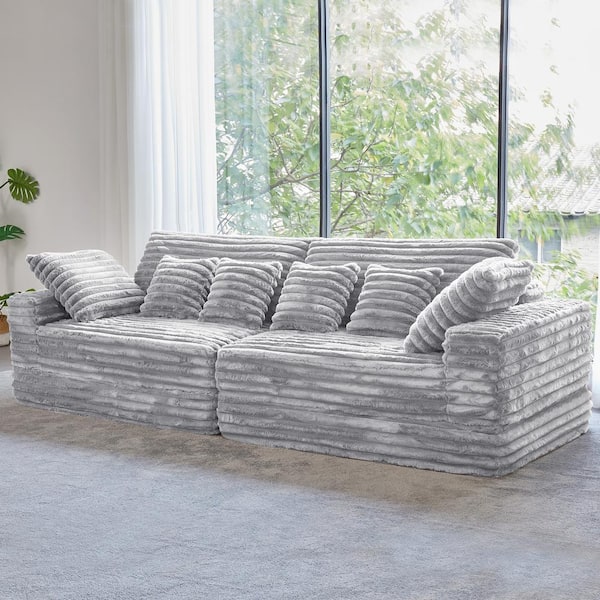 Modern 120 in. Wide Square Arm Velvet Rectangle Sectional Sofa Couch Double Seats Square in Gray