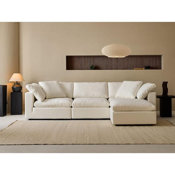 Modern 122in. Wide Square Arm Linen Fabric L-Shaped Sectional Sofa Combination Sofa 3 Seats with Ottoman in Pearl White
