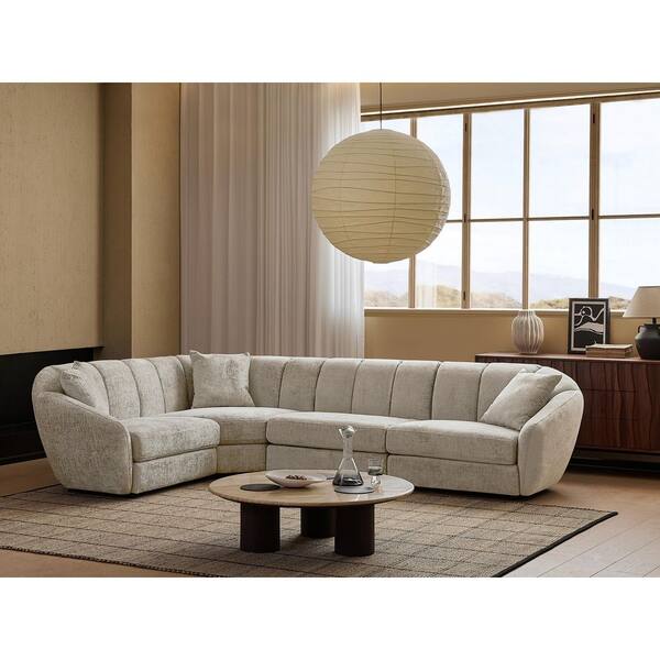 Modern 127 in. Wide Slope Arm Chenille Fabric L-Shaped Sectional Sofa Scallop Sofa 4 Seats in. Light Brown