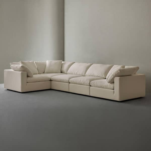 Modern 157 in. Wide Square Arm Linen Fabric L-Shaped Sectional Sofa Combination Sofa 5 Seats in. Linen Beige