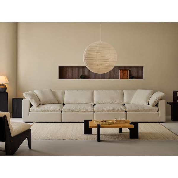 Modern 157 in. Wide Square Arm Linen Fabric Rectangle Sectional Sofa Combination Sofa 4 Seats in Linen Beige